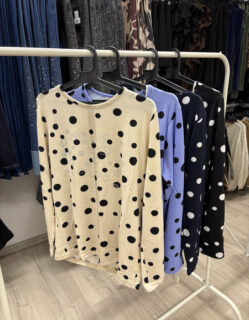 Bluză casual cu imprimeu polka dots, ideală pentru un look feminin și jucăuș. Disponibilă în mai multe culori elegante, perfectă pentru ținute de zi cu zi.
