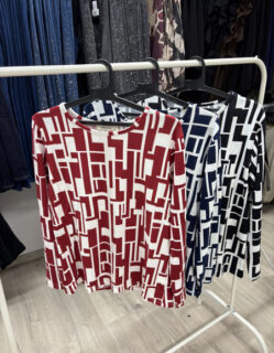 Bluză modernă cu imprimeu geometric – ideală pentru ținute casual sau office, adăugând un plus de stil și originalitate garderobei tale.