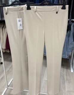 Pantaloni eleganți drepți, disponibili în nuanțe clasice (crem și bleumarin), ideali pentru ținute office sau ocazii speciale.