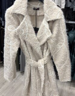 Palton scurt, cu croială elegantă și cordon în talie.