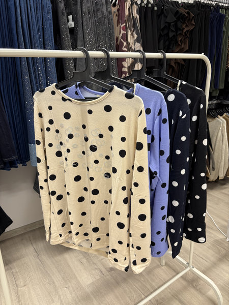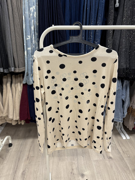 Această bluză cu imprimeu clasic cu buline adaugă un plus de rafinament oricărei ținute casual. Realizată dintr-un material moale și plăcut la atingere, oferă confort pe tot parcursul zilei. Croiala lejeră se potrivește oricărui tip de siluetă, iar imprimeul polka dots aduce un aer retro-modern, mereu în tendințe. Poate fi purtată cu blugi, fuste sau pantaloni eleganți, fiind alegerea perfectă pentru birou, plimbări sau întâlniri relaxate.