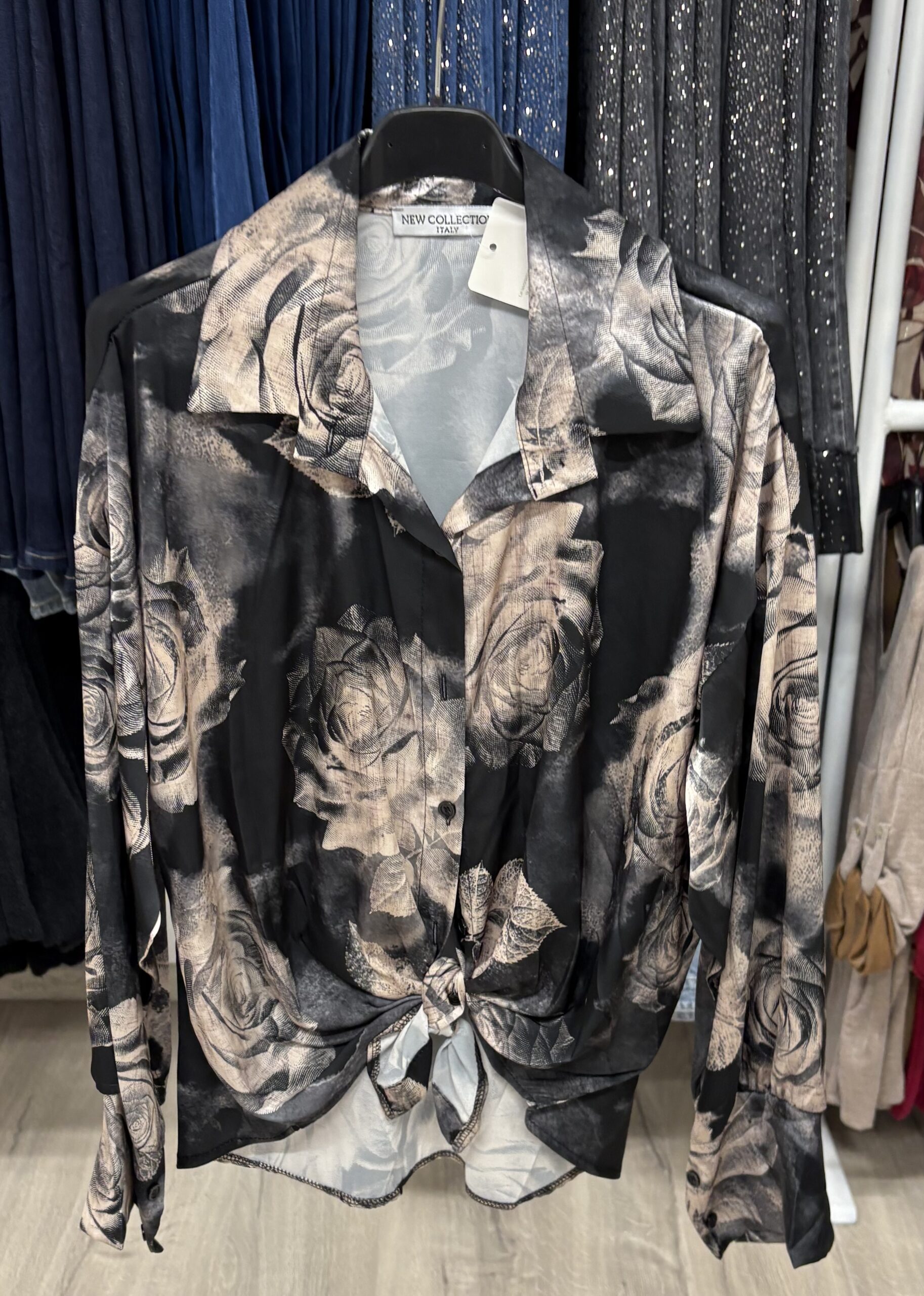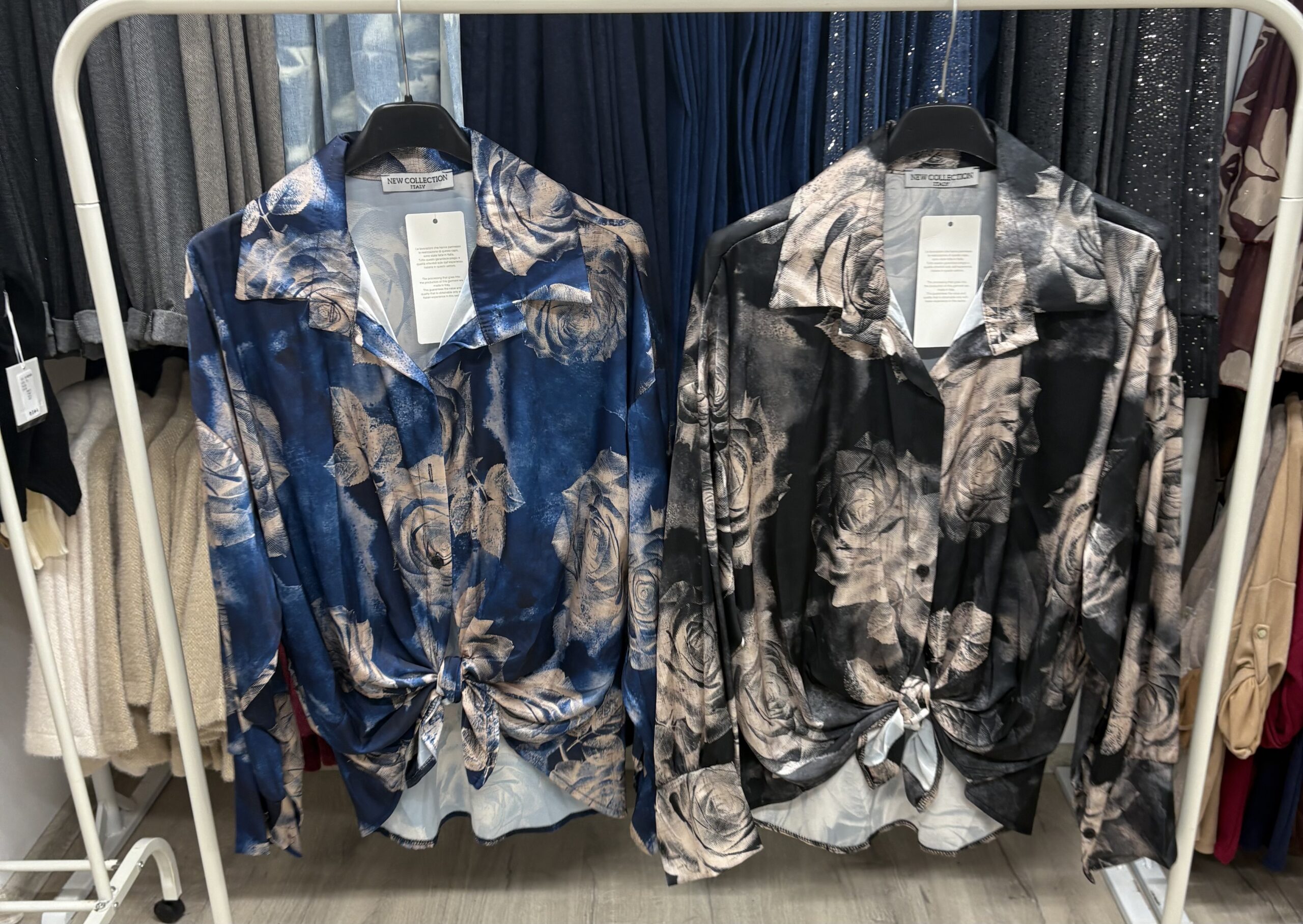 Aceste cămăși satinate cu imprimeu floral de mari dimensiuni emană feminitate și eleganță. Materialul lucios adaugă un plus de rafinament, iar croiala lejeră, cu nod decorativ în față, creează un efect chic și modern. Disponibile în două variante de culoare – albastru intens și negru clasic – sunt ideale pentru birou, evenimente sau ieșiri speciale. Se combină ușor atât cu pantaloni eleganți, cât și cu jeanși