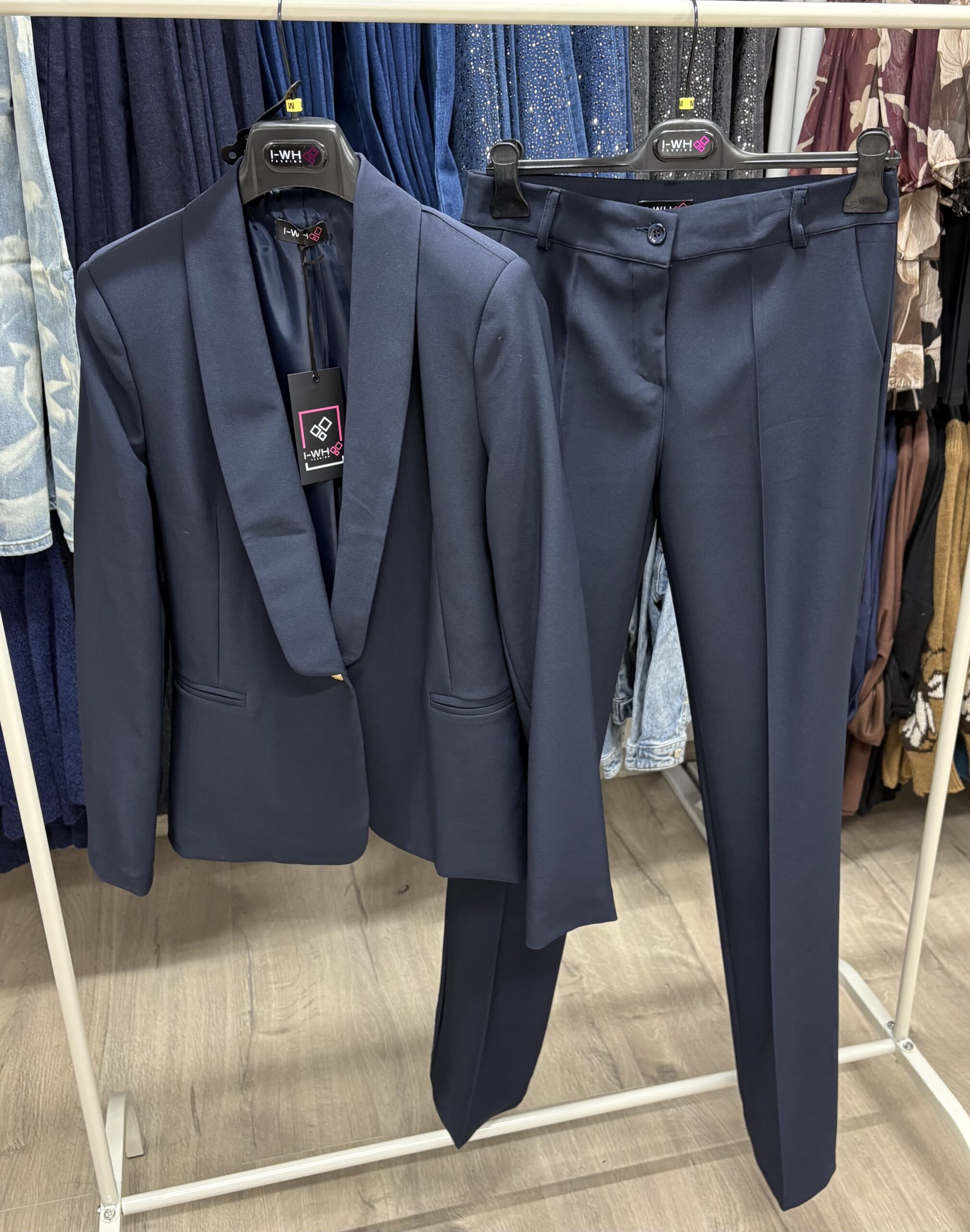 Un set versatil și sofisticat, ideal pentru femeia modernă care vrea să emane eleganță și încredere. Sacoul are o croială cambrată și se închide cu un singur nasture metalic subtil, ceea ce îi oferă un aer rafinat și ușor de integrat în diverse ținute. Pantalonii au linie dreaptă, perfectă pentru a alungi silueta și a oferi confort pe parcursul întregii zile. Costumul poate fi purtat la birou, la întâlniri importante sau chiar la evenimente unde eleganța minimalistă este cheia