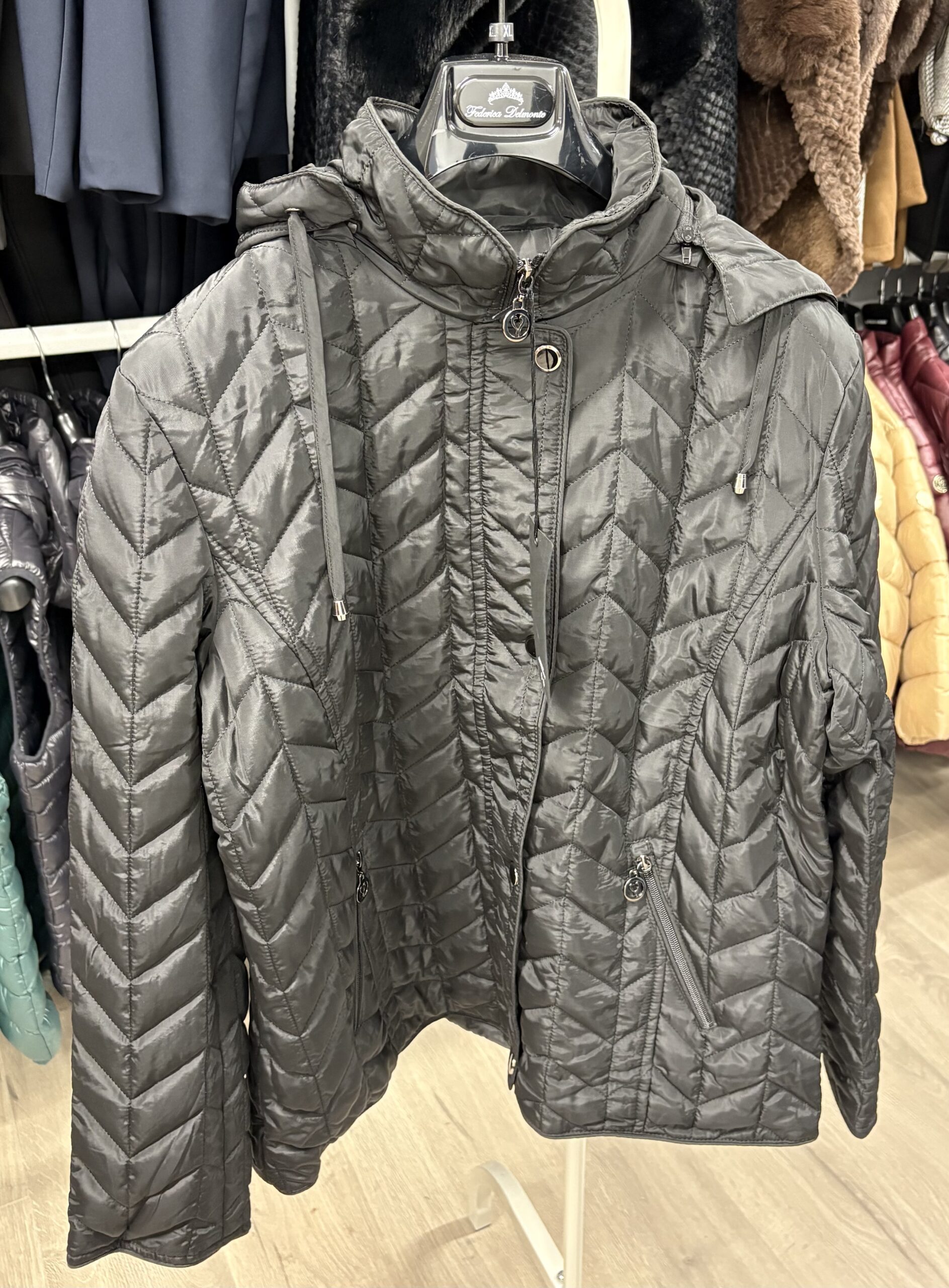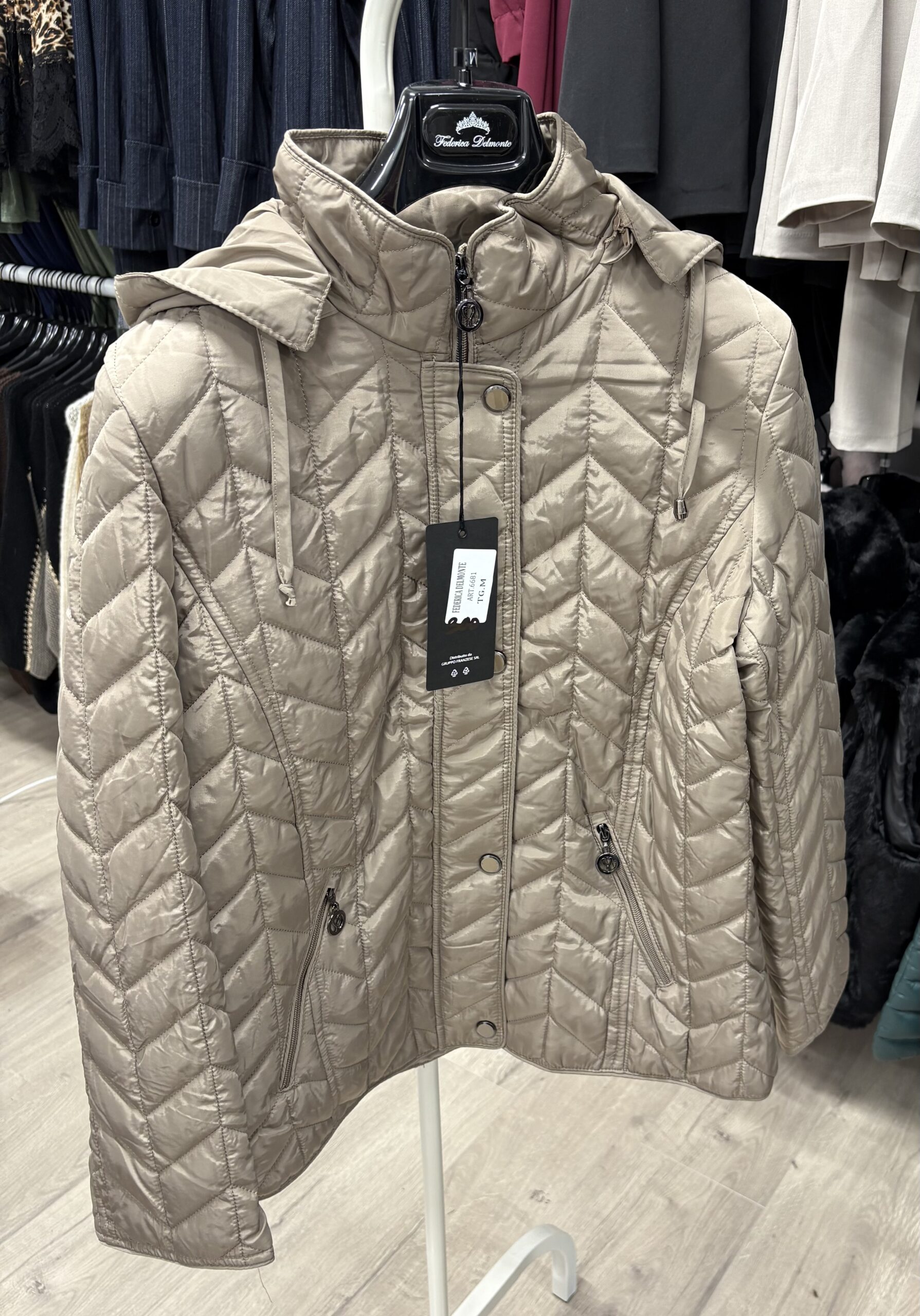 Adaugă un plus de stil garderobei tale de iarnă cu această jachetă matlasată, ce îmbină eleganța cu funcționalitatea. Modelul geometric tip zig-zag oferă un aspect modern și rafinat, iar gluga practică asigură protecție în zilele friguroase. Disponibilă în două culori ușor de asortat – bej și negru – este piesa ideală pentru a te simți confortabil și chic în același timp.