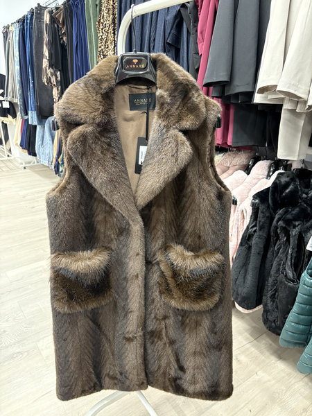 Adaugă un plus de eleganță și rafinament ținutelor de sezon cu această vestă scurtă din blană. Realizată din materiale moi și pufoase, oferă un confort plăcut și un aspect luxos.