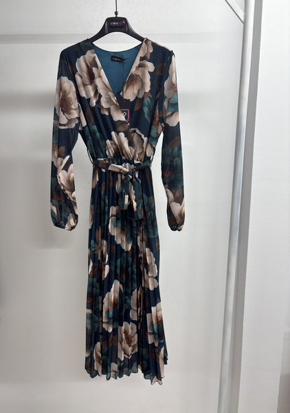 Această rochie midi cu imprimeu floral este alegerea ideală pentru femeile care iubesc eleganța și rafinamentul. Realizată dintr-un material ușor și fluid, oferă libertate de mișcare și o cădere grațioasă. Croiala petrecută cu decolteu în „V” avantajează orice siluetă, iar cordonul subliniază talia, adăugând un plus de feminitate. Fusta plissată aduce un aer delicat și elegant, transformând această piesă într-o alegere potrivită pentru evenimente, întâlniri sau zile în care vrei să te simți specială.